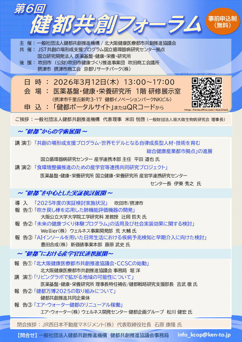 2026年3月12日(木)に、一般社団法人健都共創推進機構主催「第6回 健都共創フォーラム」の開催が決定いたしました。皆様のご参加をお待ちしております。