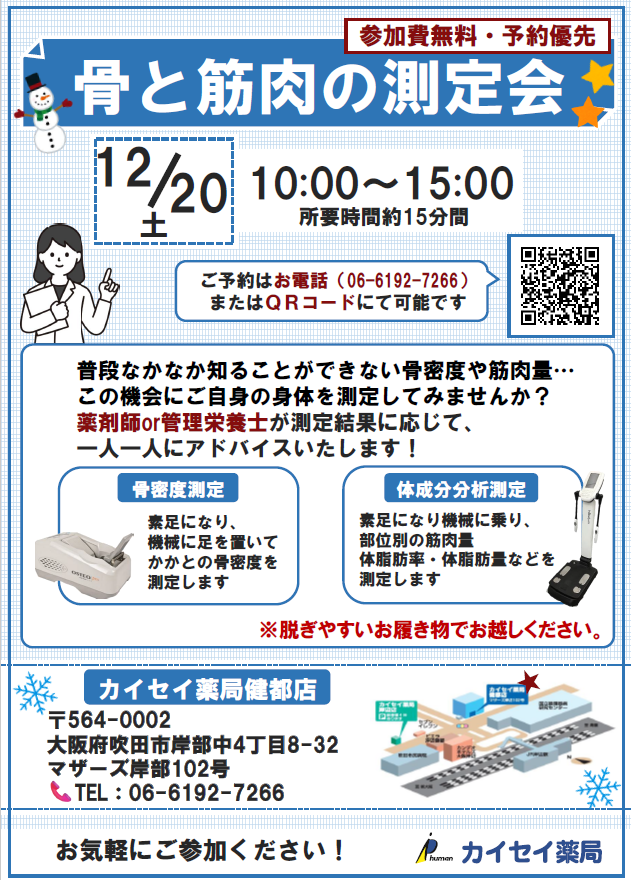 会場:カイセイ薬局 健都店(吹田市岸部中4丁目8-32 マザーズ岸部102号)