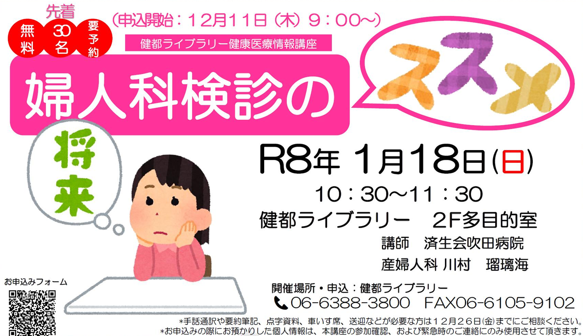 申込:要予約 TEL: 06-6388-3800 または チラシのQRコードから