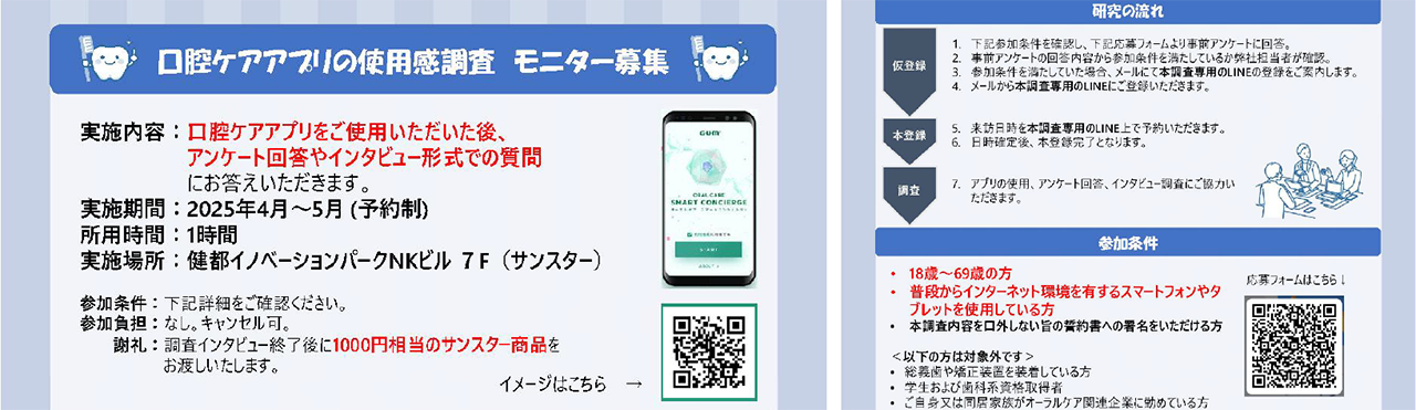 サンスター株式会社は、「健都ポータルサイト」発信、および、「健都ヘルスサポーターLINE」配信等によって参加者を募集し、口腔ケアアプリケーション使用後のアンケート調査等を実施しました。